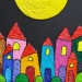 MOONLIGHT: cozy street lit by the moon. 3D with red wooden frame (not shown here).