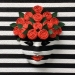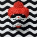 3D-art, made of canvas and a mask, treated with a mix of acrylic paint and sand. Inclusive a small black frame.