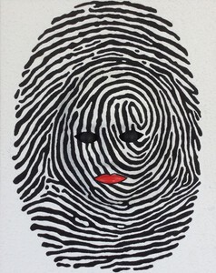 20213D-art, made of canvas and a mask, treated with a mix of acrylic paint and sand. Inclusive a small black frame.